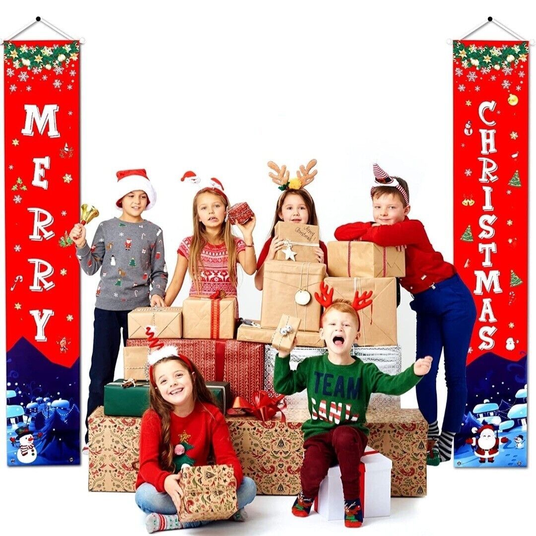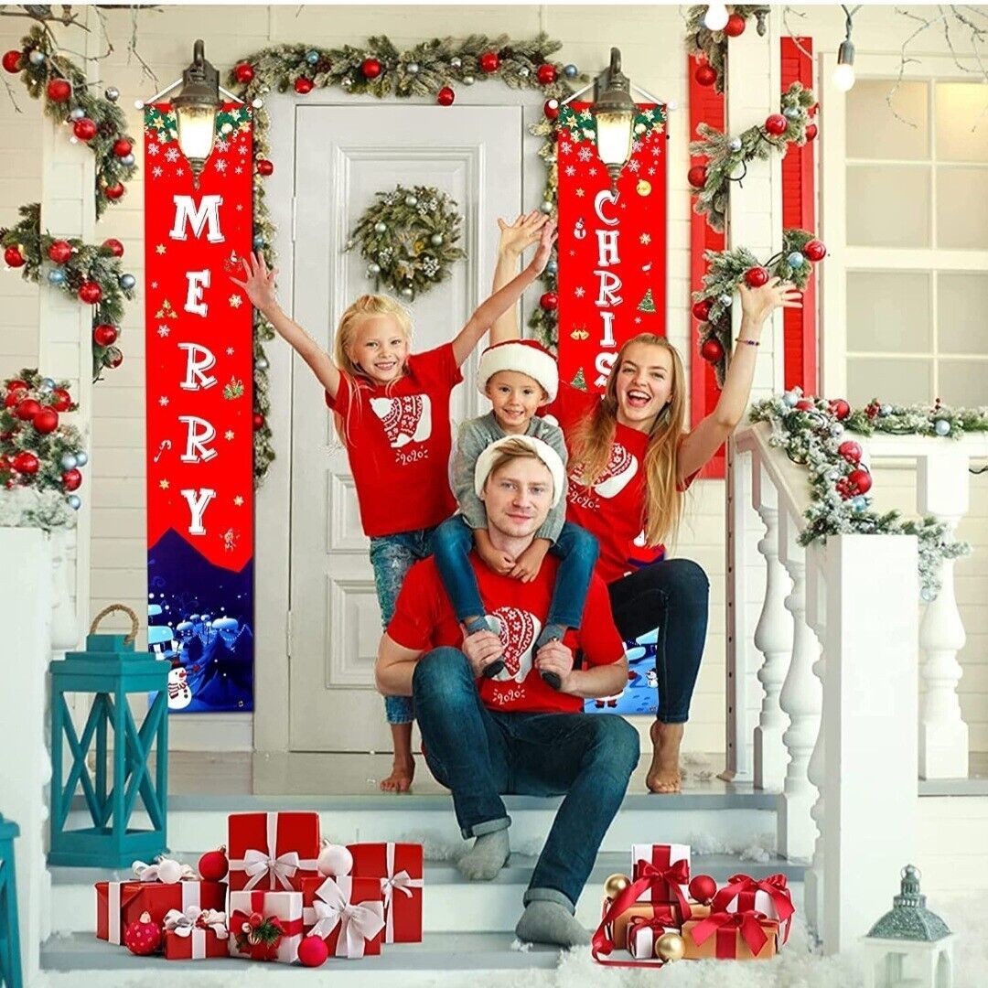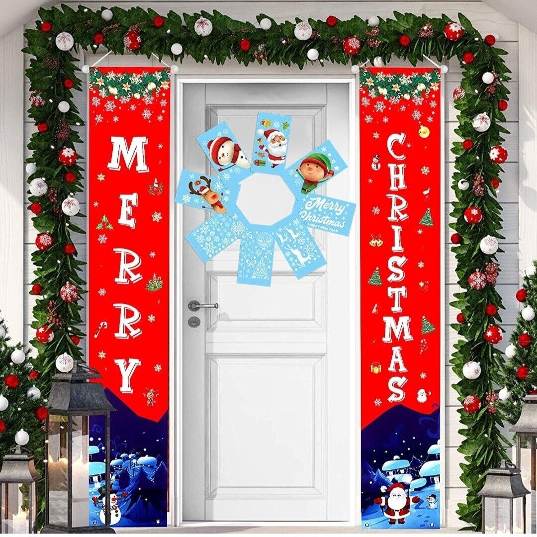 Merry Christmas Decorations Outdoor Porch Sign Set , Christmas Door Decorations with Window Clings, Christmas Decoration Banner for Front Door Christmas Decoration, Christmas Hanging Signs Decor