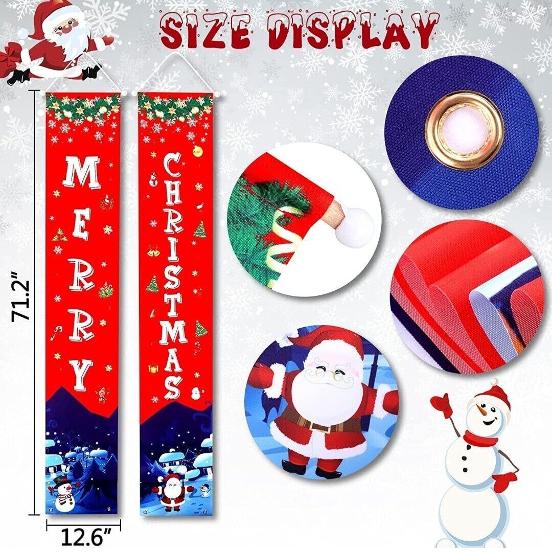 ?Christmas Porch Sign? - The package includes 1 x MERRY banner, 1x CHRISTMAS banner, 8 PCS Christmas window stickers. Both flags are the size of 71.2 inches x 12.6 inches, they can fit the door and porch perfectly.