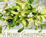 - Merry Christmas Greeting Card 1910s Embossed Mistletoe White Berry Silver PCBG6B