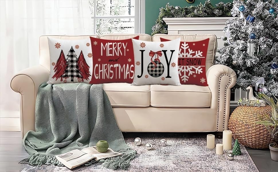 The Winter pillow covers adopt classic Christmas theme design, with red and white Black Christmas elements and snowflake?Christmas tree patterns. Help you create a comfortable and warm Christmas farmhouse holiday decorations atmosphere