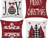 Merry Christmas Red Throw Pillow Covers 18 X 18 Inch Set of 4 Christmas Joy Xmas