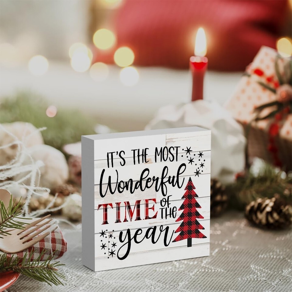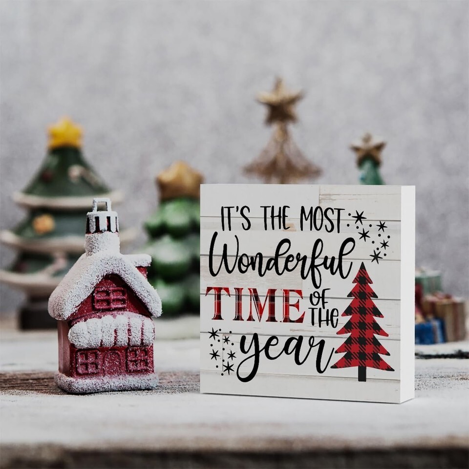 - Merry Christmas Reindeer Tree Wood Box Sign Farmhouse Decor 5x5 Inches