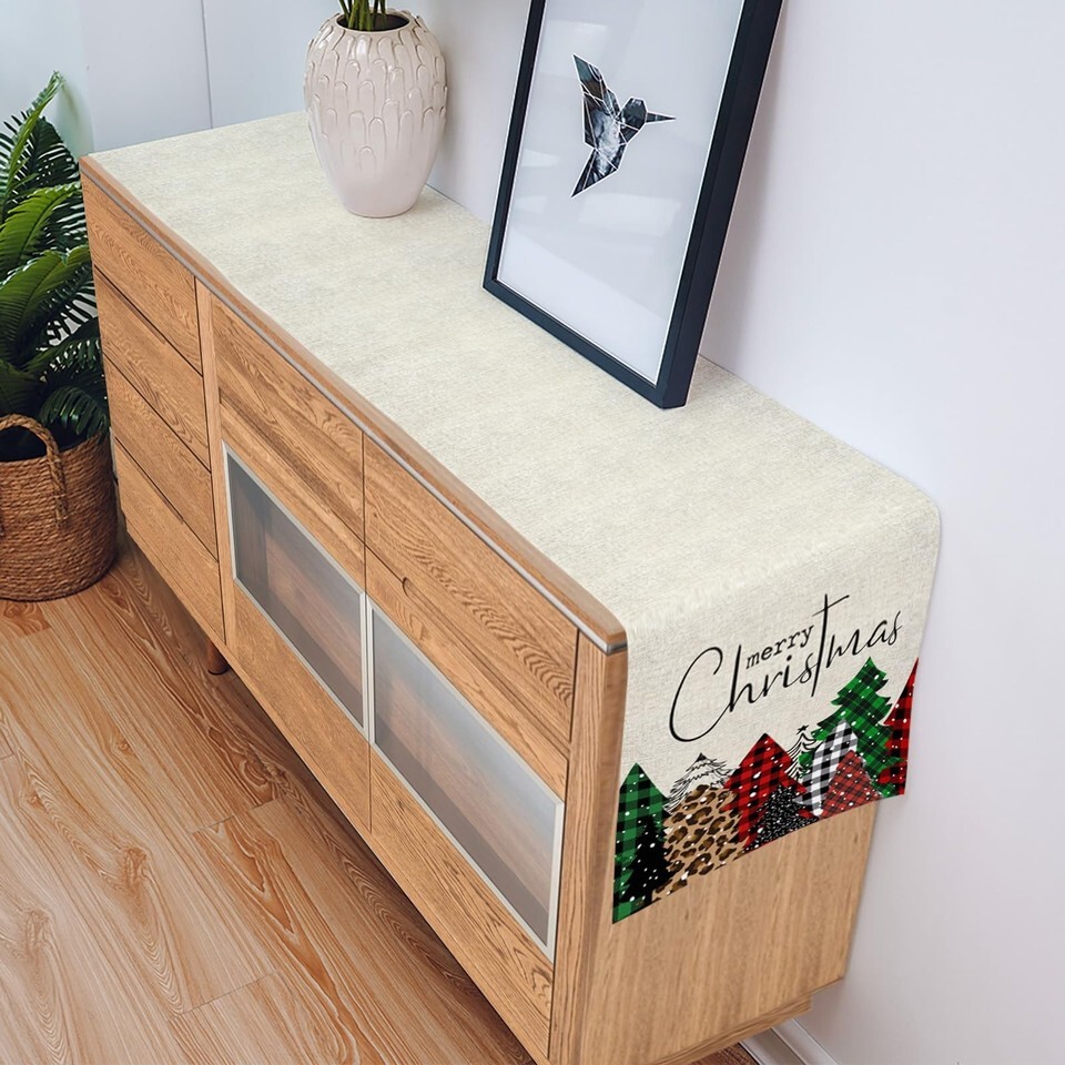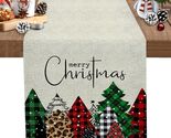 - Merry Christmas Table Runner Buffalo Plaid Xmas Tree Cotton Linen 13x72 RedGreen