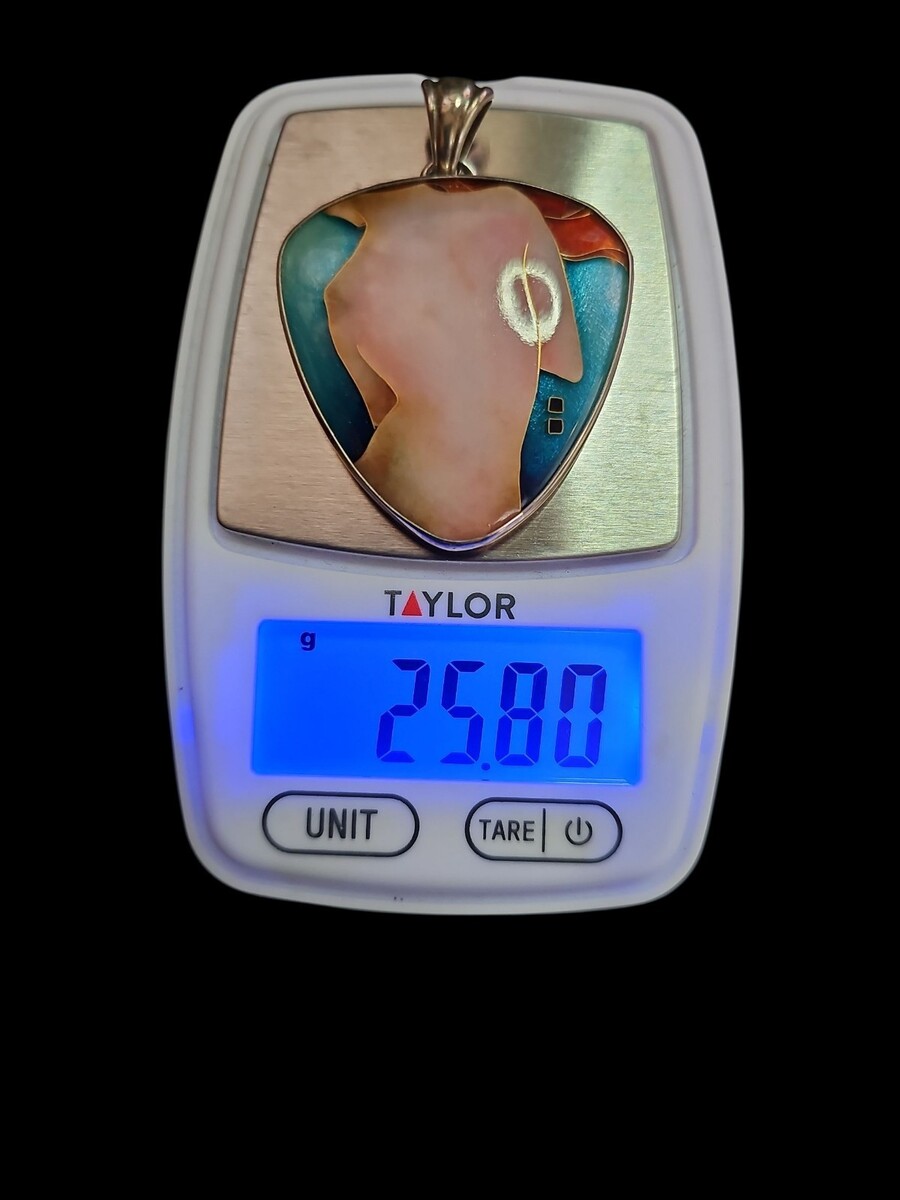 - Merry-Lee Rae Cloisonné Mermaid Study Signed Sterling Silver Pendant Art Jewelry