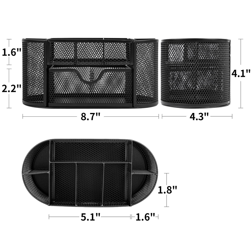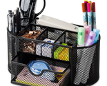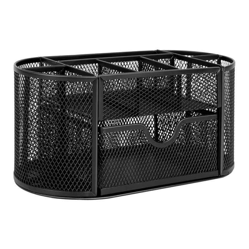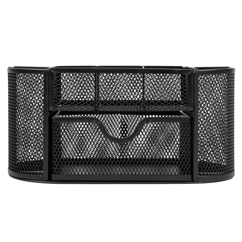 - Mesh Desk Organizer with Drawer, 8 Compartments, Black