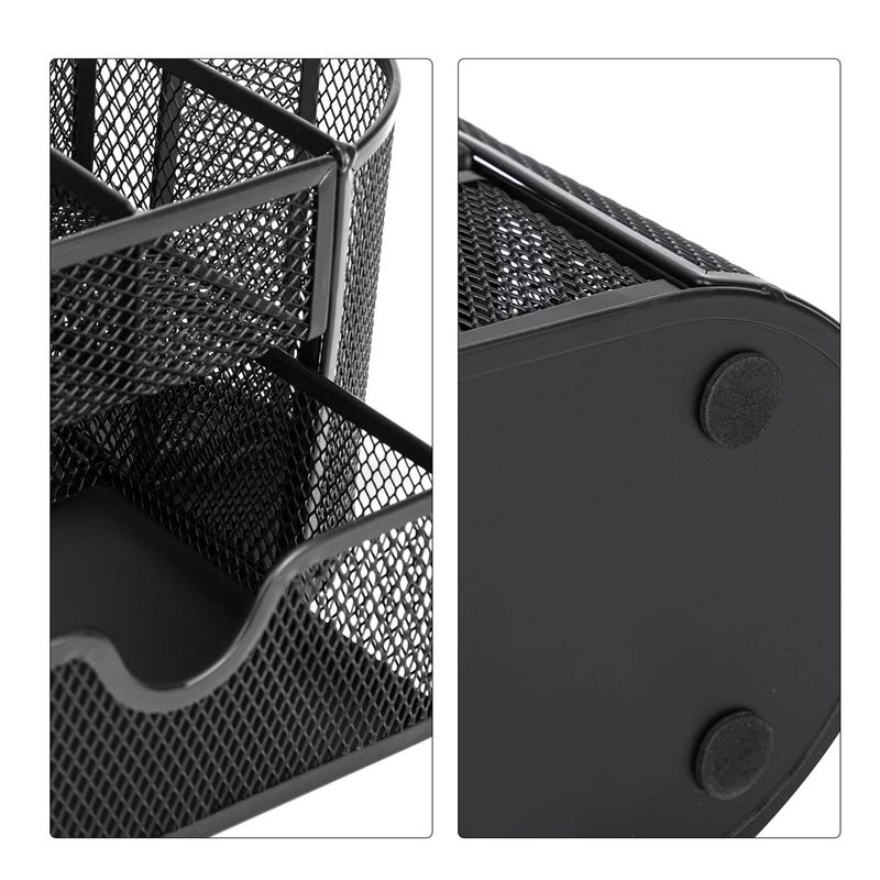 Deli mesh oval tabletop organizers are made of high quality metal with a durable rust-resistant coating.Rounded edges keep your workspace surface safe,and four non-skid feed on the bottom protect your desk from scratching.