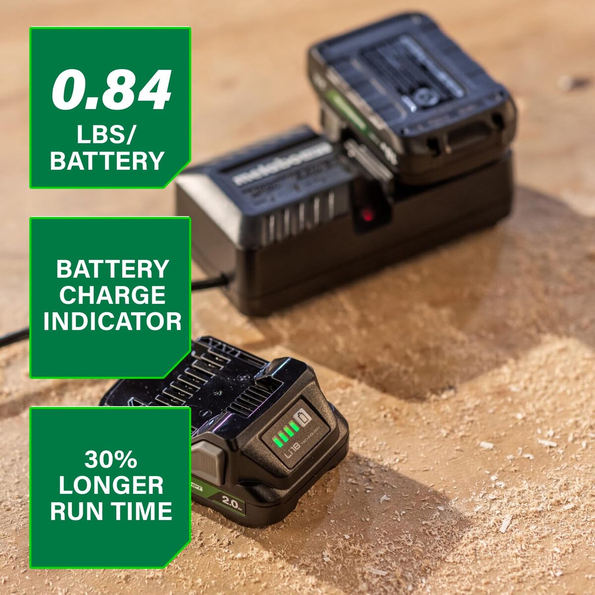 - Metabo HPT 18V Lithium Ion Battery & Charger Kit, 2.0Ah Batteries with Charge In