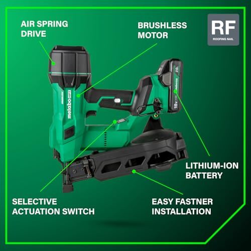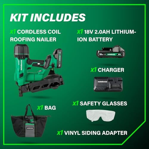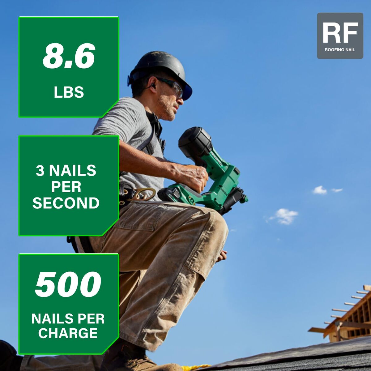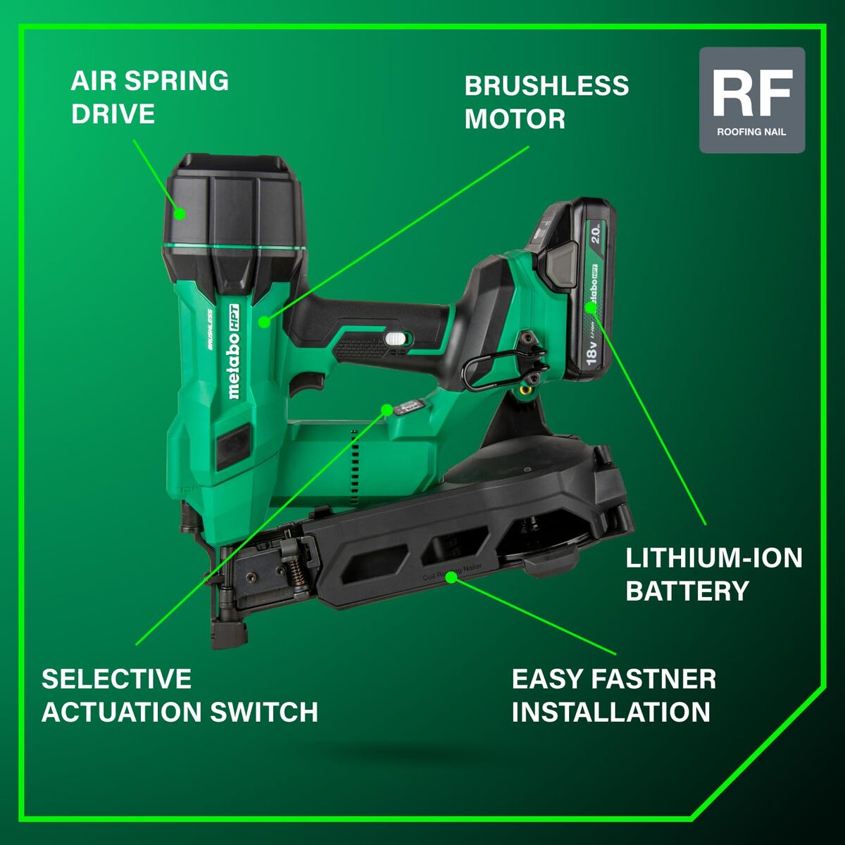 - Metabo HPT 18V MultiVolt Brushless Cordless Coil Roofing Nailer Kit, 1-3/4" Coil
