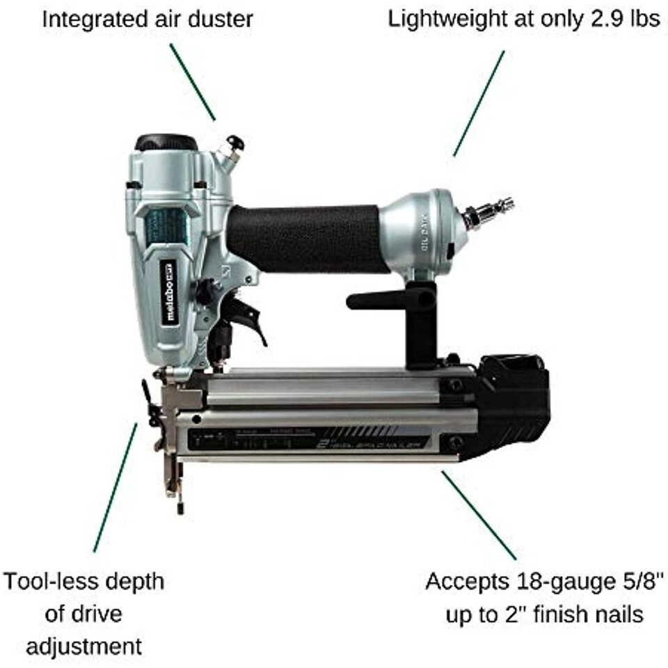 The 2" 18-Gauge Pro Brad Nailer - NT50A5 has been designed with the professional carpenter in mind. It is ideal for trim work, furniture building and other finish applications. It accepts finish nails from 5/8" In length up to 2". The newly redesigned high-grade aluminum magazine not only provide exceptional durability, but also prevents jams caused by fastener overlap. The integrate air Duster is convenient allowing the user to quickly clear away any dust or debris from their work surface. Automatic dry-fire lock-out protects the work piece by not allowing the tool to operate if there are no brad nails in the magazine. The left or right side mountable belt hook helps keep the tool on hand at all times.AWARDS: The preferred Pro brand of Pneumatic nailers. Based on the 2014, 2015, 2016, 2017, 2018 2019 product Brand surveys in builder developer Magazine