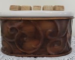 Soap dish is made of metal base ~ porcelain top with wooden slats for soap