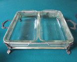 METAL FOOTED STAND HOT FOOD SERVER WITH GLASS INSERTS ANCHOR HOCKING? 2 1/2 X 5 1/2 MEASUREMENT OF INSERTS, STAND 11 X 6 [*MET2BSKT]