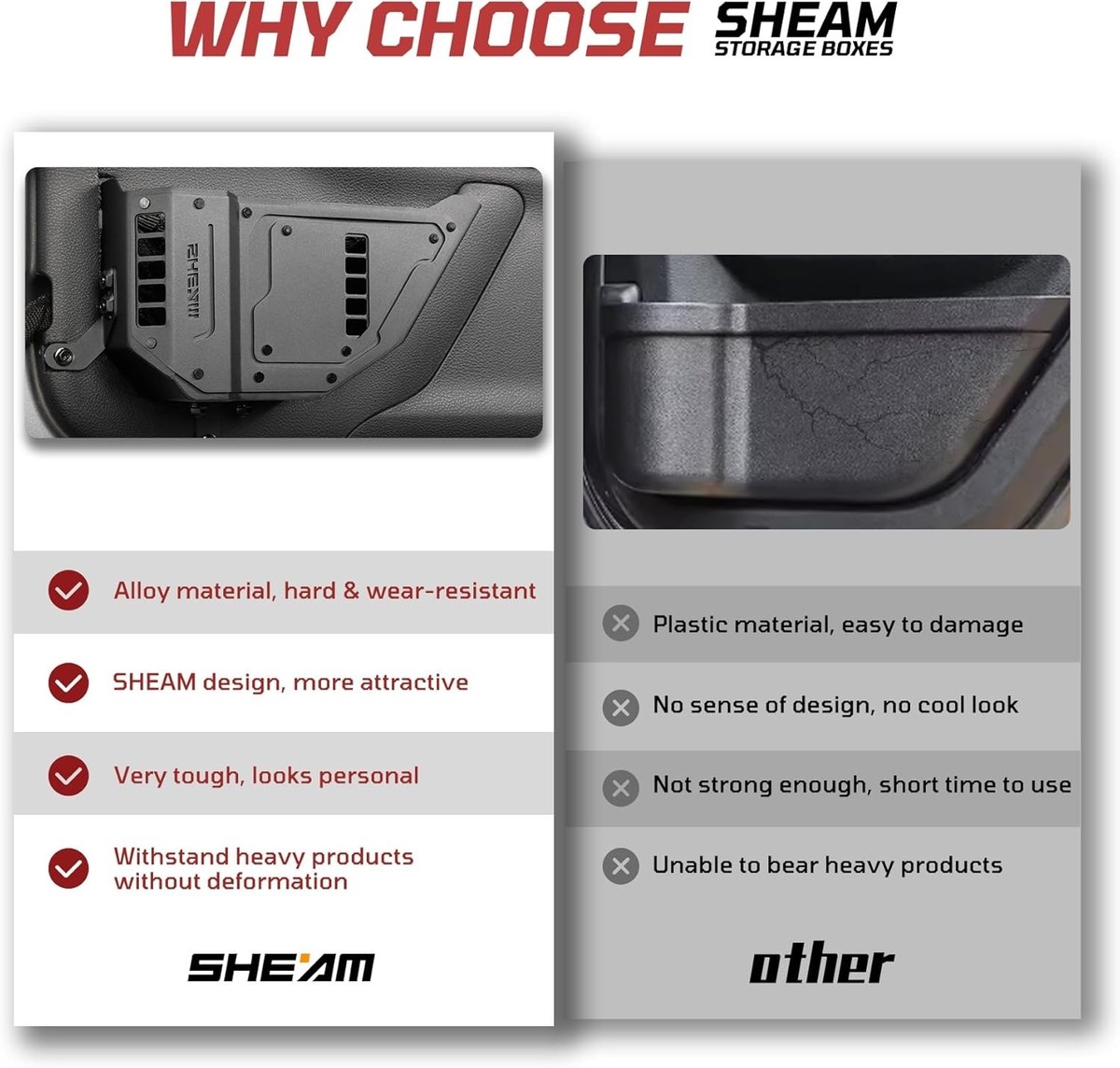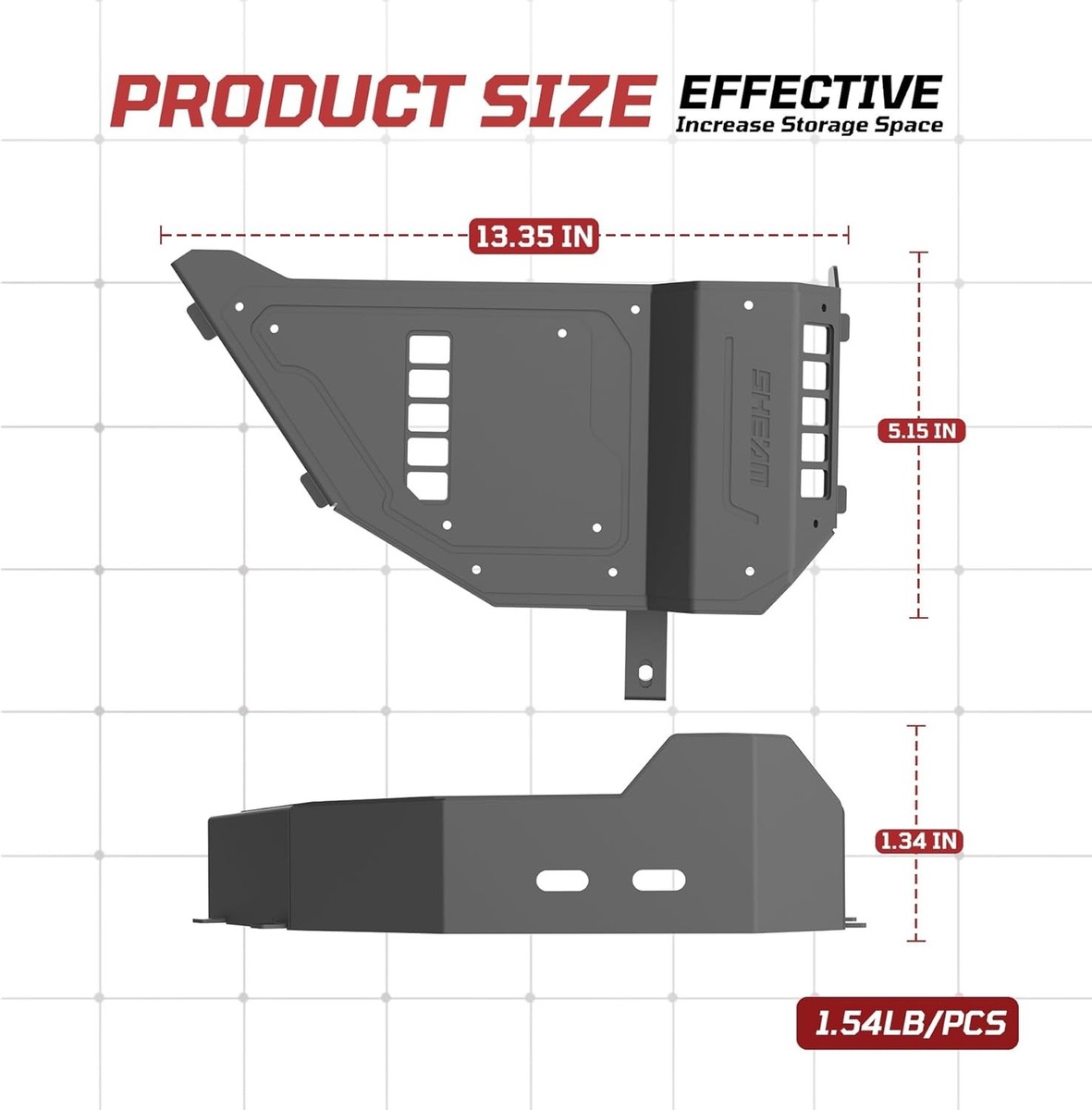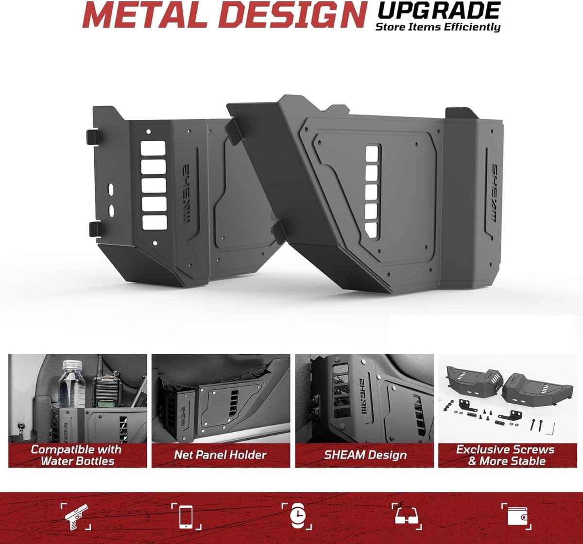 ??Fitment?SHEAM metal front door storage pockets are designed for 2009-2018 Wrangler JK JKU 2/4 Door.