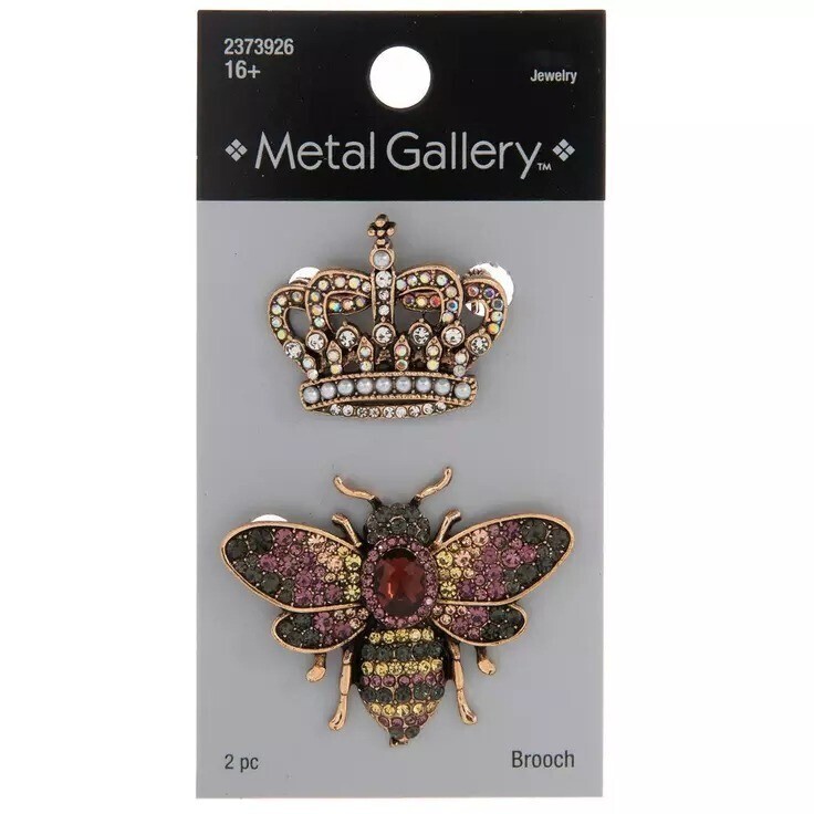 - Metal Gallery Bee & Crown Rhinestone Brooches