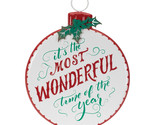 Beloved Holiday Sentiment "It s the Most Wonderful Time of the Year" paired with a festive holly leaf accent. Classic Ornament Shape Traditional red, green, and white tones in a timeless ball ornament design. Versatile Holiday Decor Perfect for your living room, entryway, or as a gift to share the holiday spirit. Suitable for indoor use only