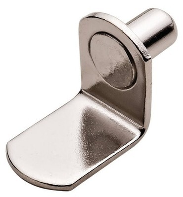 Upgrade your shelving system with these high-quality metal shelf supports. Designed with a push-in angled pin, riveted construction, these supports provide durability and stability for cabinets, closets, furniture, and DIY shelving projects. Available in three finishes ? bronze, brass, or nickel ? they combine function with style for a clean, professional look. Key Features Durable Construction: Made from solid steel for long-lasting strength and reliable weight-bearing support. Easy Installation: Push-in angled design allows quick and simple installation into O5 mm drill holes. Riveted Pin Design: Ensures the support stays firmly in place and resists bending or shifting. Maximum Load Capacity: Supports up to 20 lbs per shelf support. Versatile Finish Options: Choose from bronze, brass, or nickel plated finishes to match your furniture or cabinetry. Fits Standard Cabinets Bookshelves: Ideal for most metrically sized cabinets, furniture, closets, and bookshelves. Compact Design: Minimal footprint keeps shelves neat and uncluttered. Recommended Uses: Cabinets: Secure adjustable or fixed shelves in kitchen, bathroom, or office cabinets. Closets: Supports shelves for clothing, accessories, or storage bins. Furniture: Reinforce shelves in bookcases, display units, or storage furniture. DIY Projects: Ideal for custom shelving builds requiring strong, reliable support.