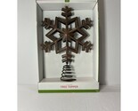 Bring festive charm to your Christmas tree with this metal snowflake tree topper. Crafted in a rustic brown finish with an intricate cut-out snowflake design, it adds a timeless winter touch to your holiday decor. The sturdy spring base makes it easy to secure to the top of most trees.
