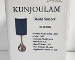This is a modern gold metal table lamp by Kunjoulam. It features a lighthouse theme, with a dome-shaped lamp shade included. The lamp is powered by a wall plug-in. It is designed for various rooms such as the bedroom, living room, kitchen, and home office/study, providing E26 lighting technology. 60W maximum.