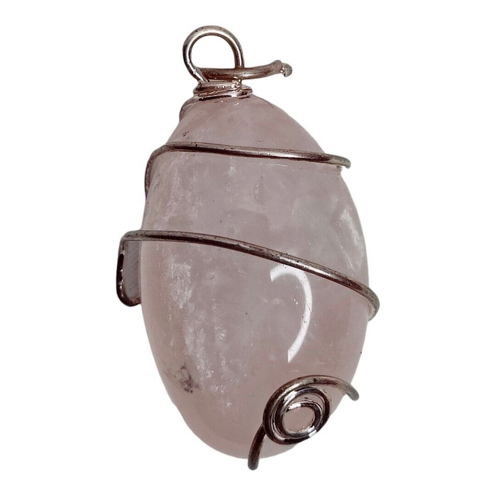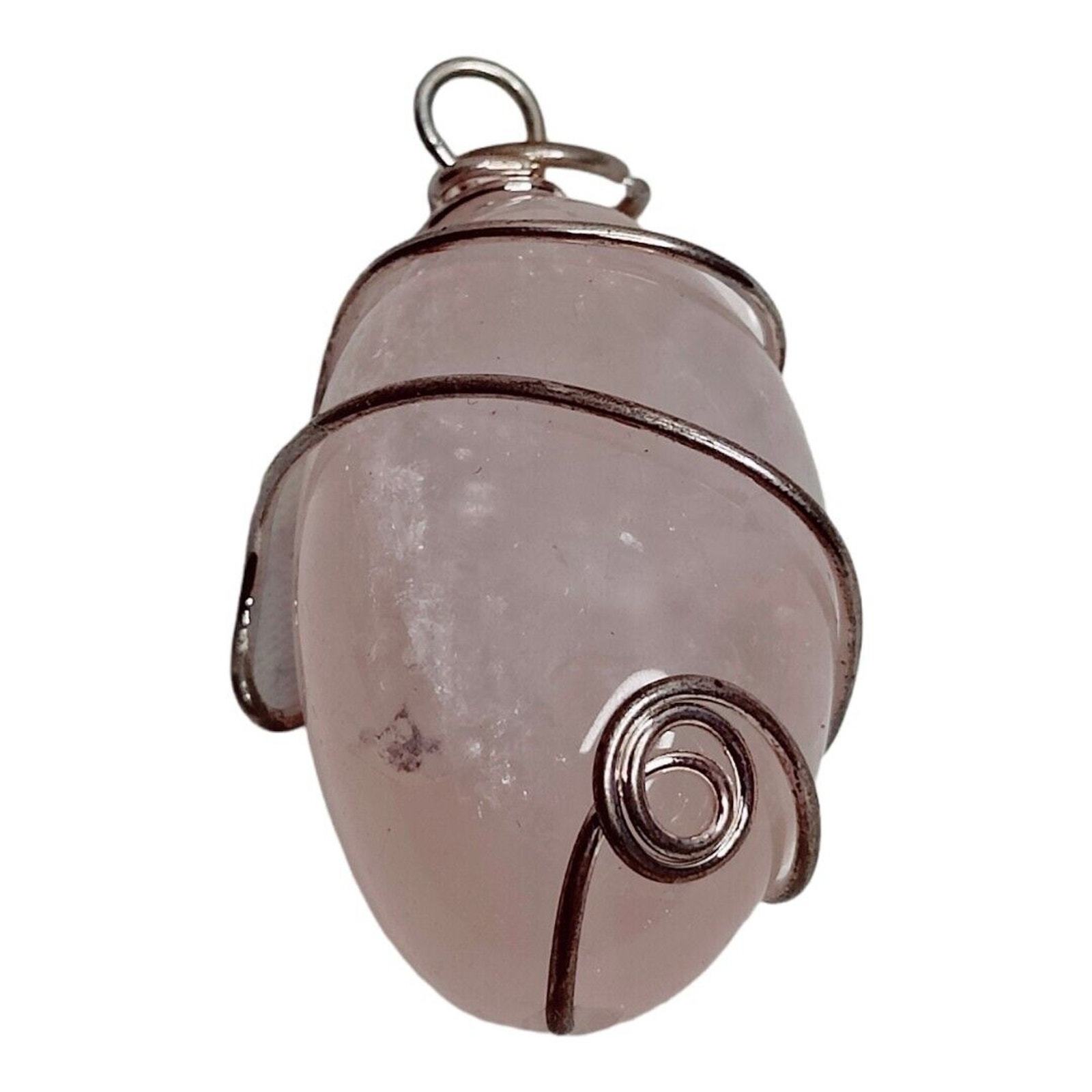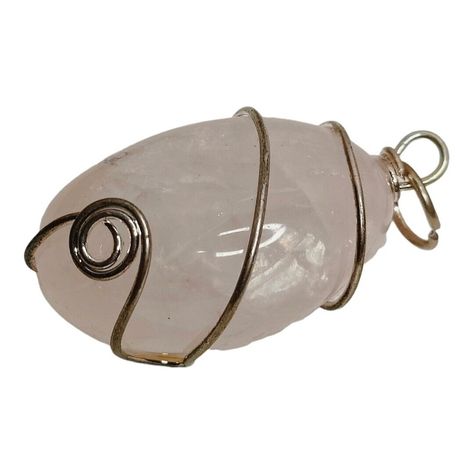 - Metal Wire Wrapped Pink Rose Quartz Crystal Stone Necklace Jewelry Pendant