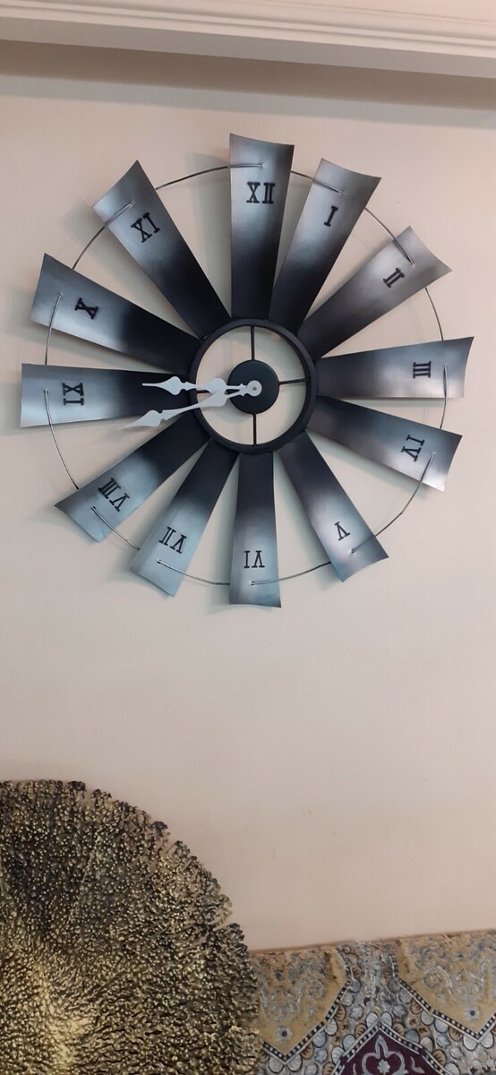 Riesige große Schwarz/Silber -Windmühlen -Wanduhr Vintage Antique Wall Art Home Decor Clock. Windmühlen werden verwendet, um Strom zum vernünftigen Preis zu erzeugen. Dieses Kunstwerk ist eine Nachbildung derselben Vintage- und antiken Kraft, um Ihr Zuhause oder Büro usw. zu dekorieren. Wir bei Artizay wiederholen die Geschichte dieses Designs des frühen 19. Jahrhunderts in einem modernen und zeitgenossischen Avatar. Die Große betragt 28 Zoll hoch, 28 Zoll Lange. Die Stundenhand ist 7,5 Zoll lang und die winzige Hand ist 10 Zoll lang. Das Gesamtgewicht betragt etwa 3 kg. Hat einen Haken auf der Rückseite, um an der Wand zu hangen. Dieses Produkt ist in einer Menge Luftpolsterfolie, Thermocol und einer Wellbleche gepackt. Wenn Sie an der Kasse Ihre E -Mail -ID und Ihre Telefonnummer f