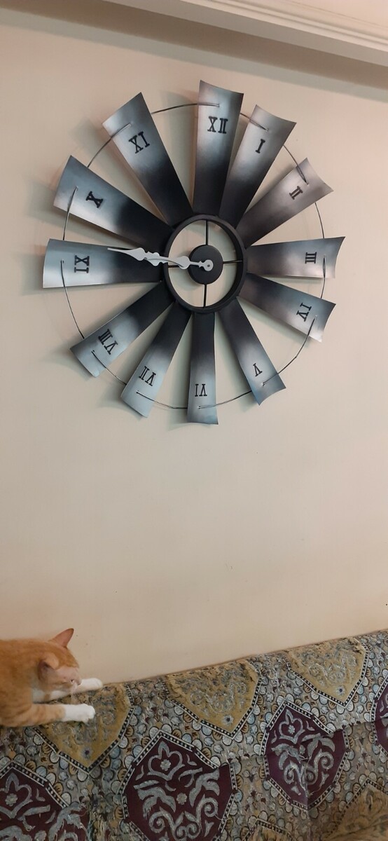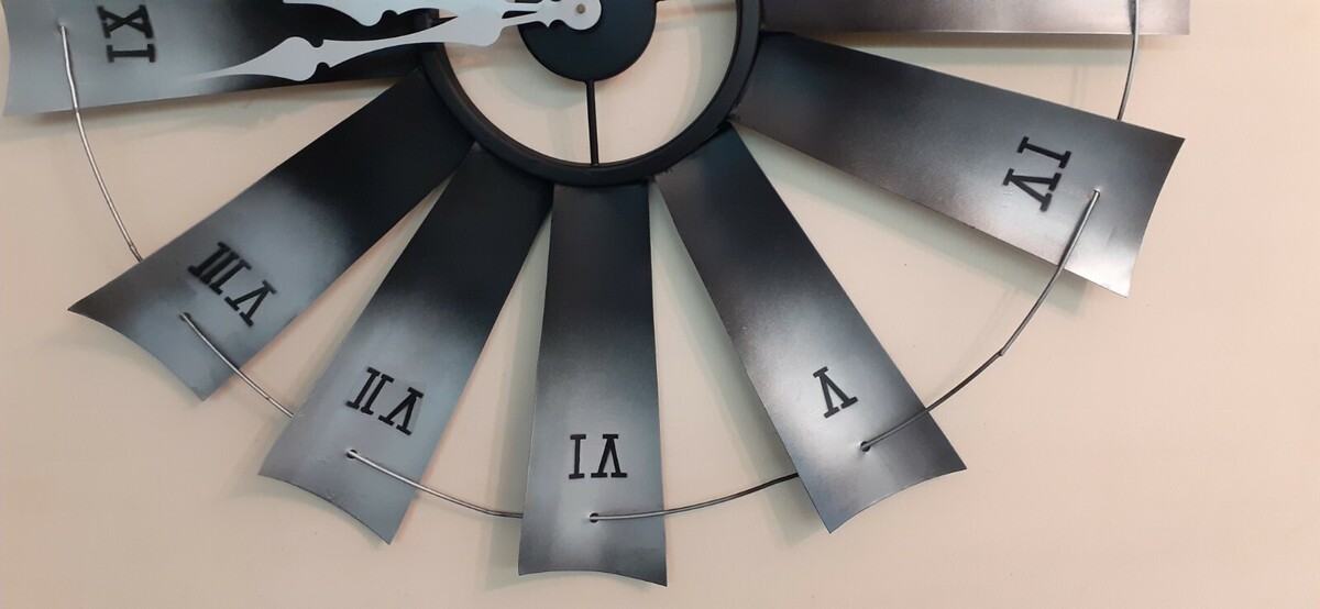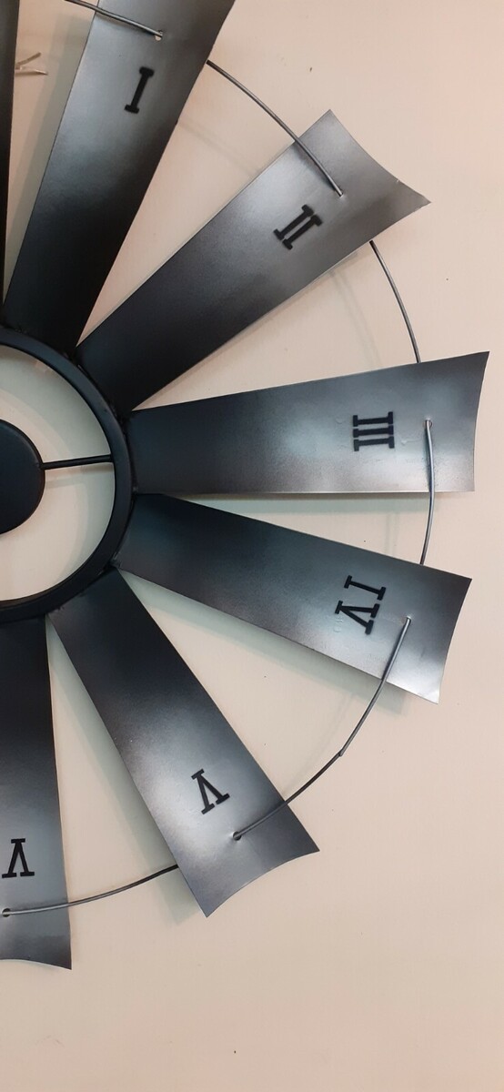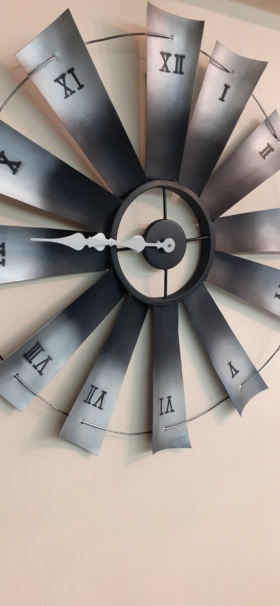 Riesige große Schwarz/Silber -Windmühlen -Wanduhr Vintage Antique Wall Art Home Decor Clock.