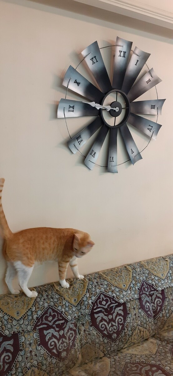 Die Stundenhand ist 7,5 Zoll lang und die winzige Hand ist 10 Zoll lang. Das Gesamtgewicht betragt etwa 3 kg. Hat einen Haken auf der Rückseite, um an der Wand zu hangen.