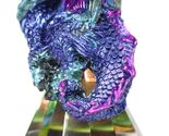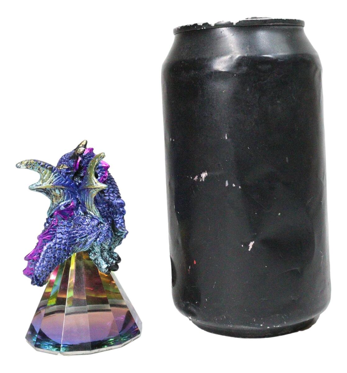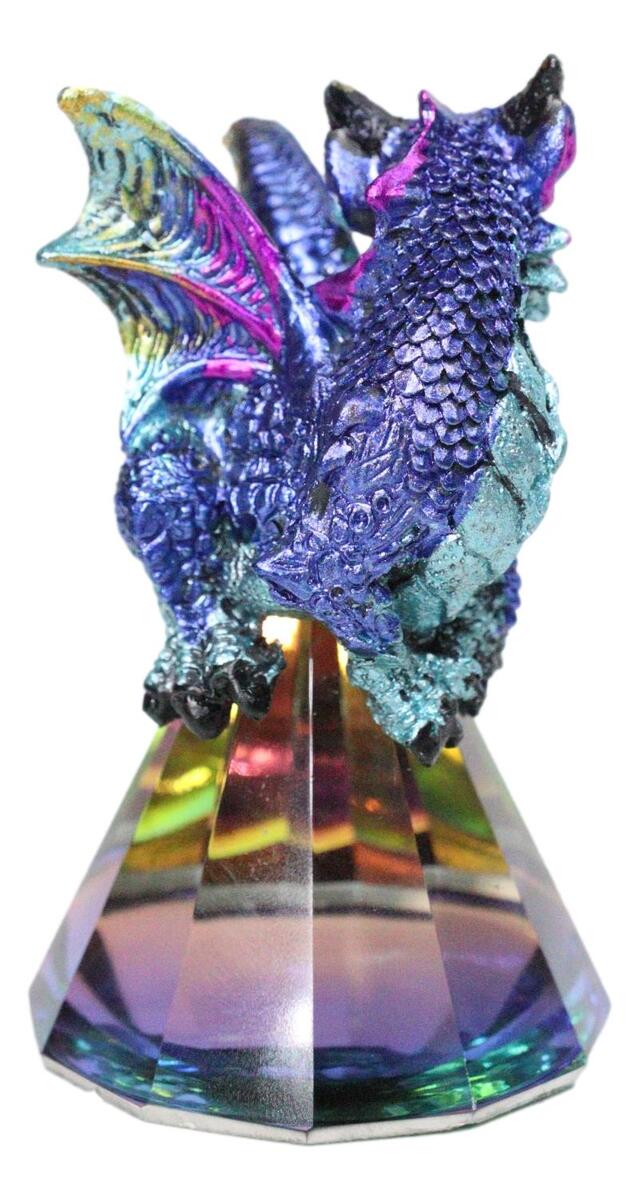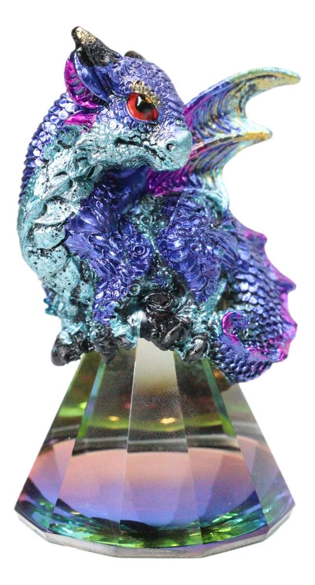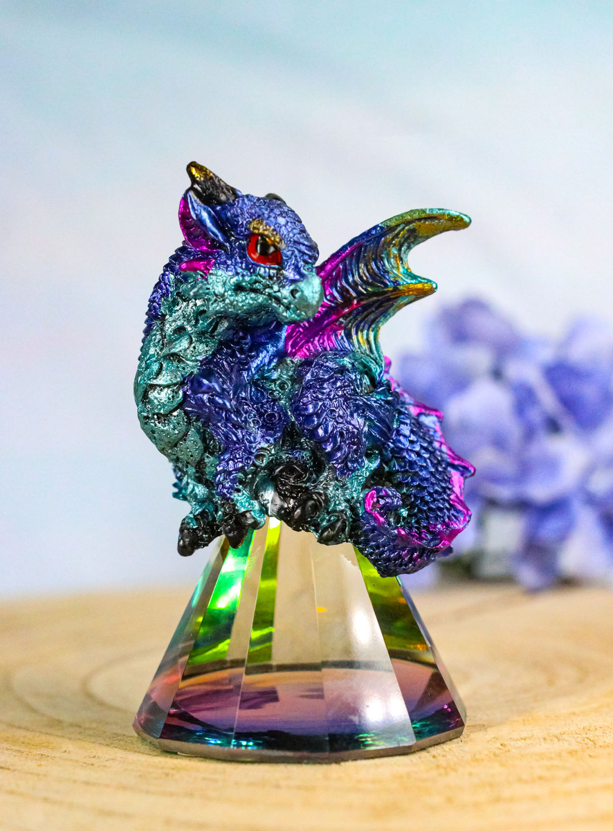 - Metallic Blue Dragon Perching On Iridescent Pyramid Glass Small Figurine
