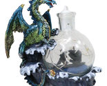 Metallic Frozen Sea Dragon Rising Above Waves by Glass Bottle With Ship Figurine
