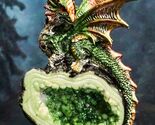 - Metallic Green Iridescent Wyrmling Dragon On Faux Geode Crystal Rock Figurine