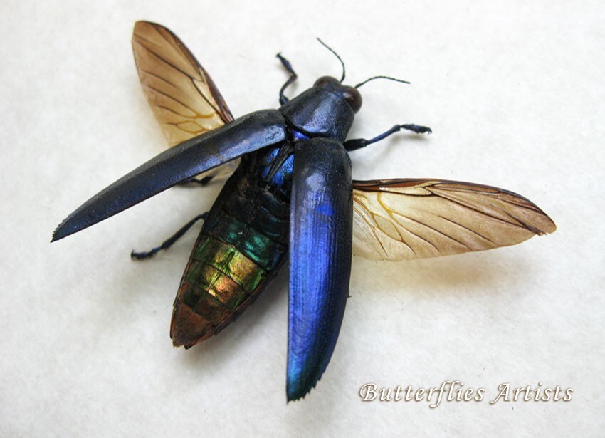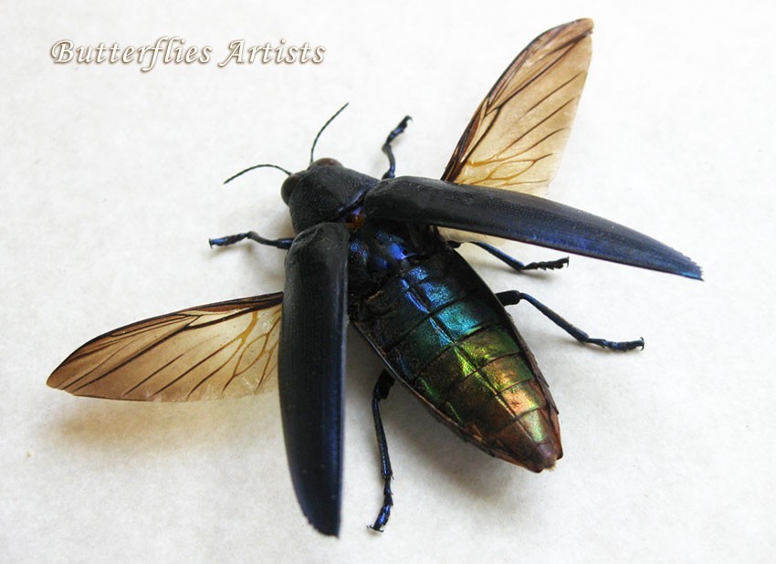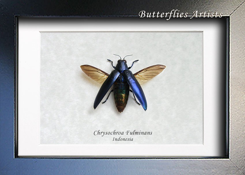 - Metallic Violet Blue Chrysochroa Fulminans Beetle Framed Entomology Shadowbox