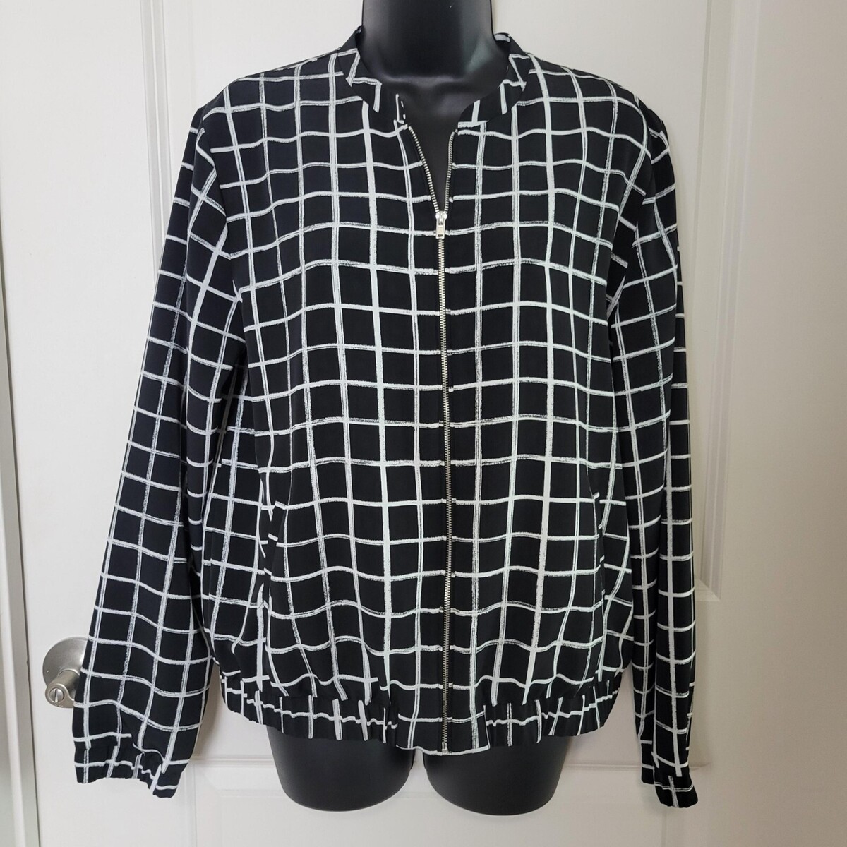 - Metaphor Womens Jacket Black White Zip Up Size L Business to Casual Clothing