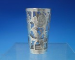 Marvelous Mexican shot glass with rose motif sterling silver overlay, circa 1960 (maker unknown). This piece measures 2 1/2" tall x 1 1/2". It is not monogrammed and is in good vintage condition. Wow!