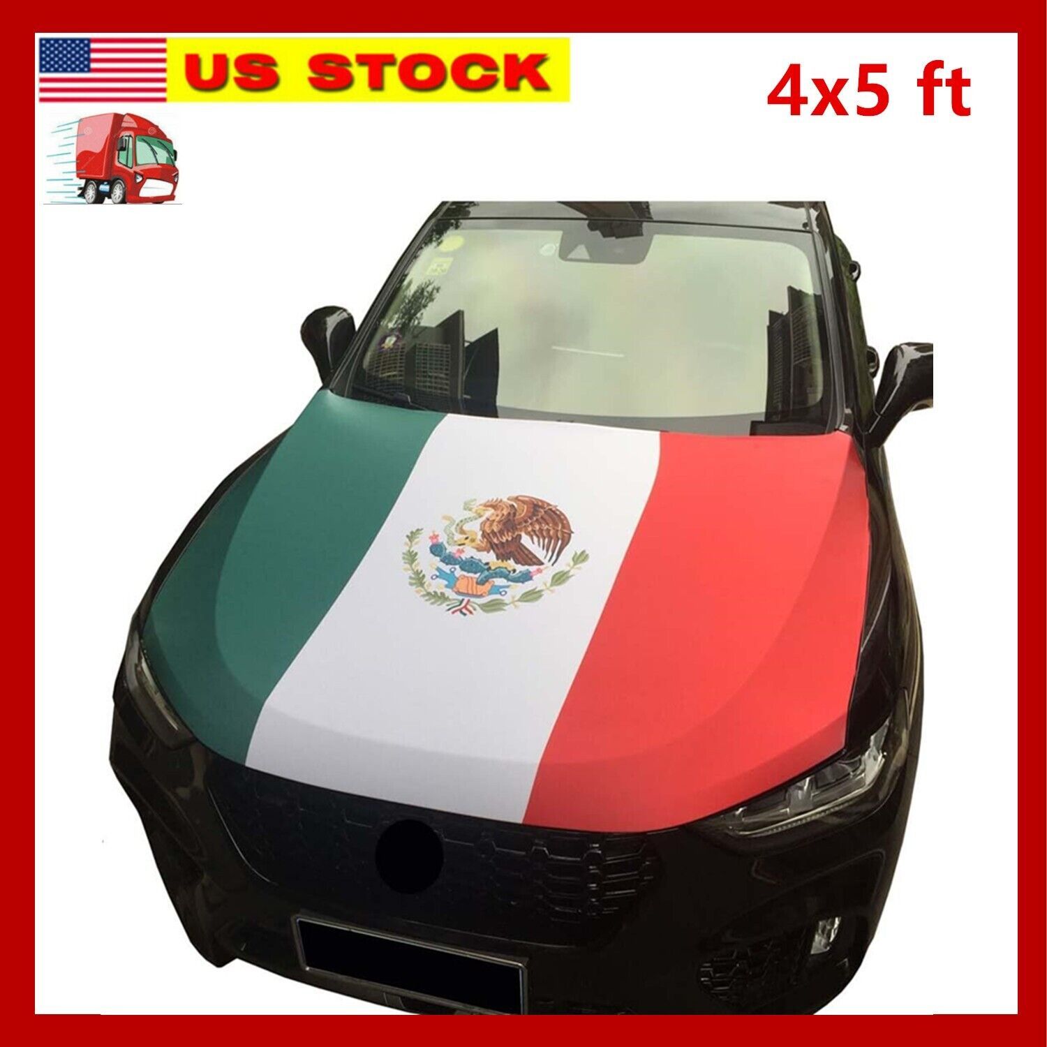 - Mexico Flag Car Hood Cover Universal Size Elastic Polyester Patriot MX 4x5 ft