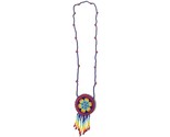 Product description: Round-shaped beaded medicine pouch bag with flower mandala design, Czech glass seed bead fringe dangles and necklace strap.
