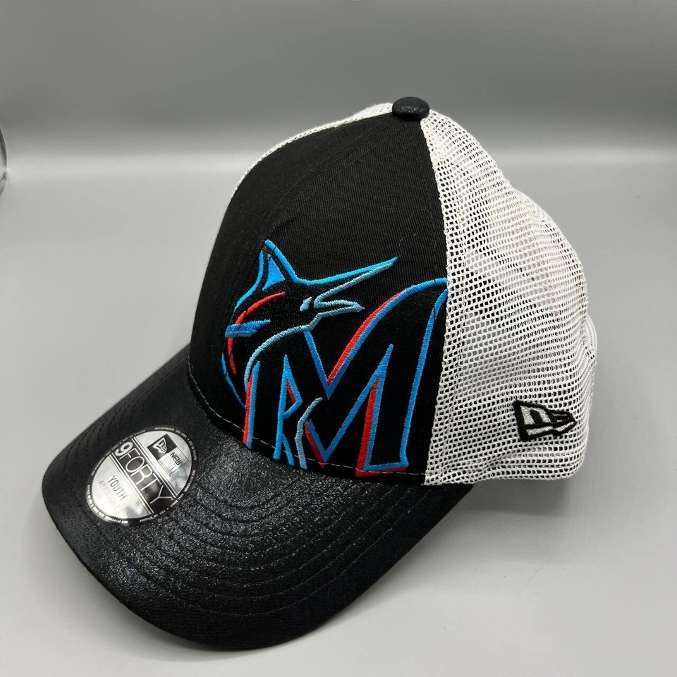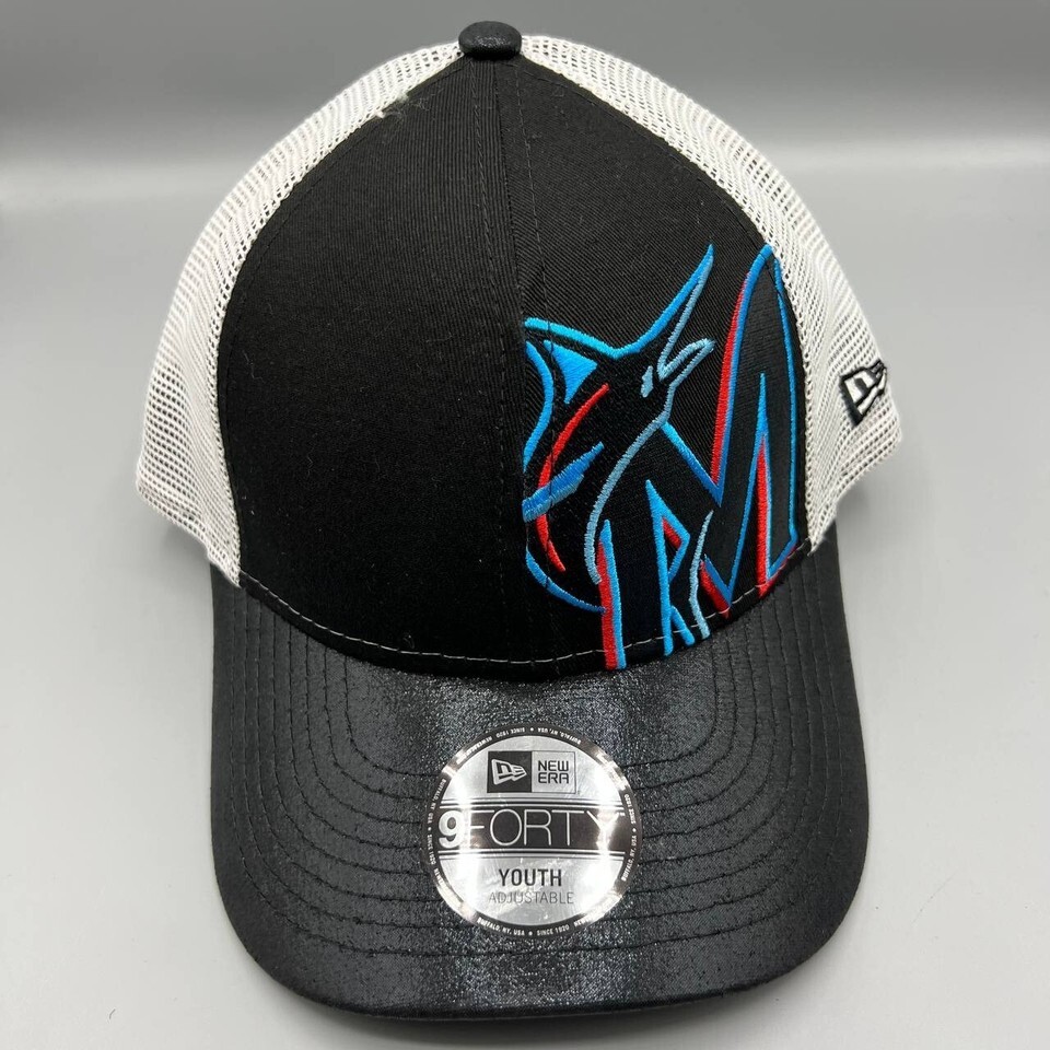 - Miami Marlins Trucker Hat Youth Black 9Forty New Era Snap Back Cap New