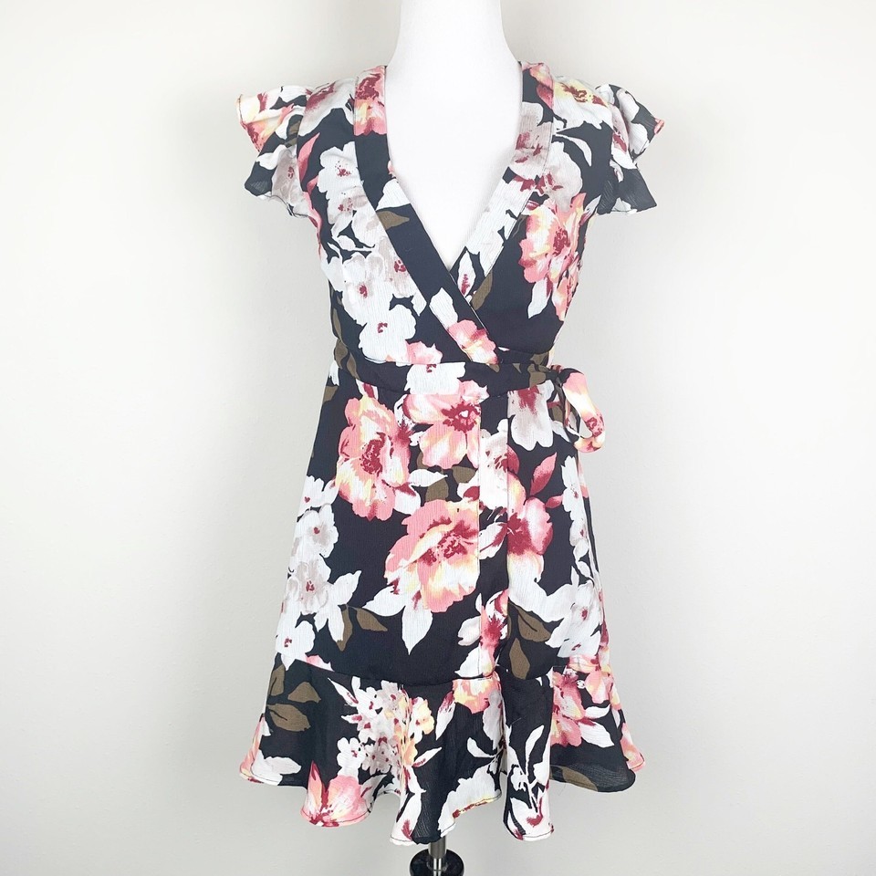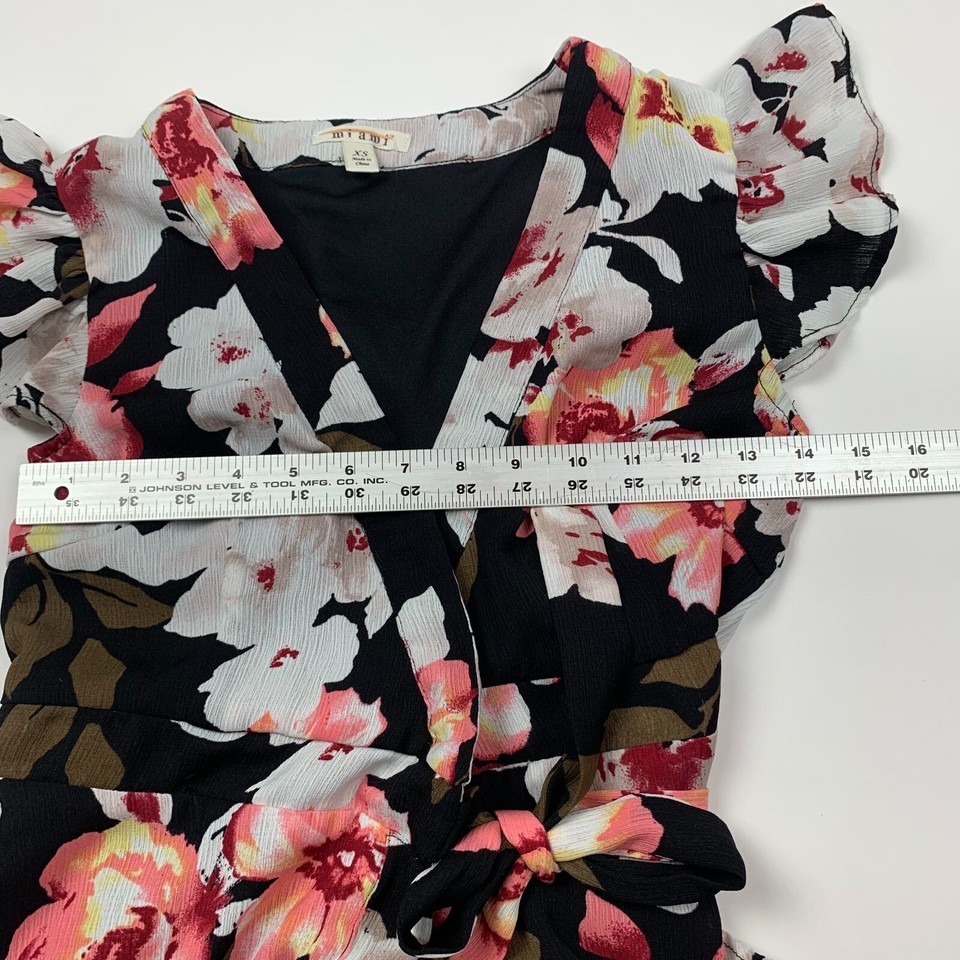 - Miami Womens Dress Multicolor Size XS A-Line Floral Print Wrap Short Sleeve