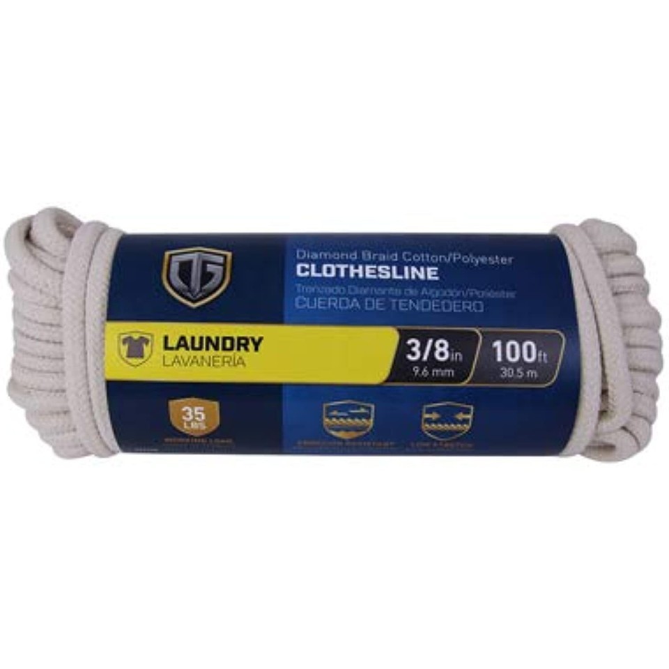 Tru-guard, 3/8 x 100', diamond braided cotton clothesline, synthetic core, 35 lb safety work load, Hank.