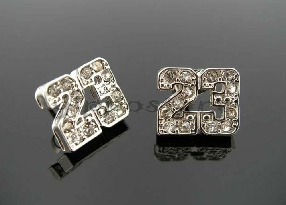 - Michael Jordan Jumpman 23 Basketball Silver Tone CZ Stud Hip Hop Bling Earrings