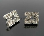 Pierced stud earrings in the shape of number "23," the number of NBA great Michael Jordan, adored with clear European crystal rhinestones