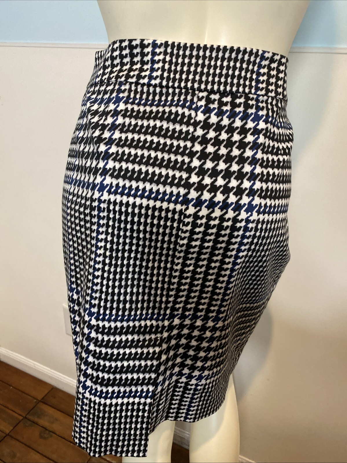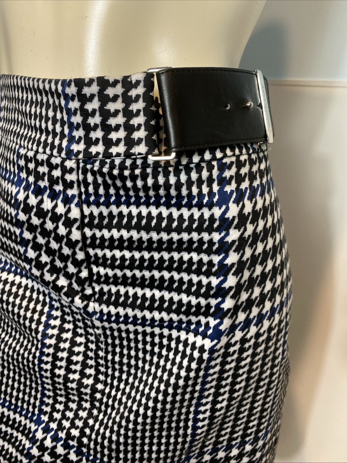 - Michael Kors Black, White, Blue Checked Lined Straight Pencil Skirt Size 10