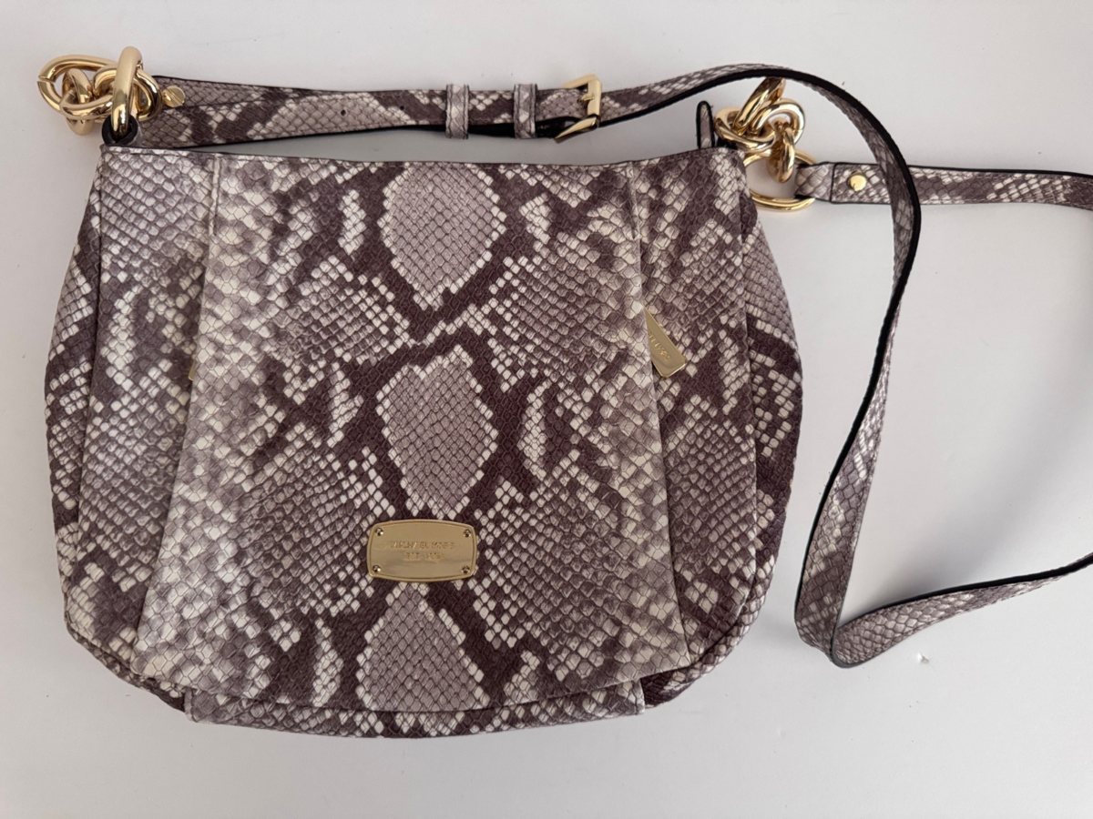 - Michael Kors Hallie Dark Sand Python Snakeskin Crossbody Handbag Purse