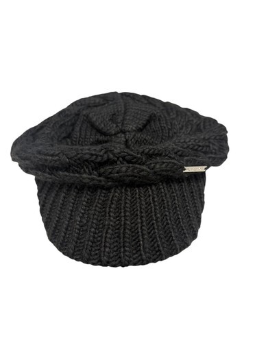 ? Michael Kors MK Cable Knit Beanie Hat w/ Brim Black Silver Logo 539720C NWT $70 | Women?s Designer Winter Hat