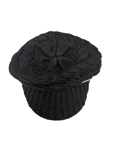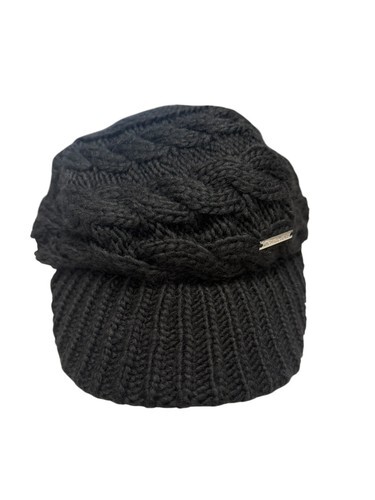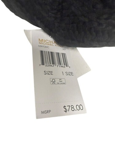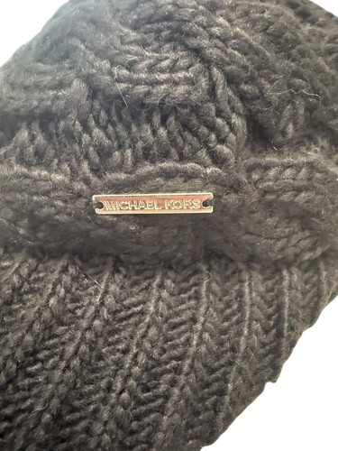 - Michael Kors MK Cable Knit Beanie Hat W/ Brim Black Silver logo 539720C NWT $70
