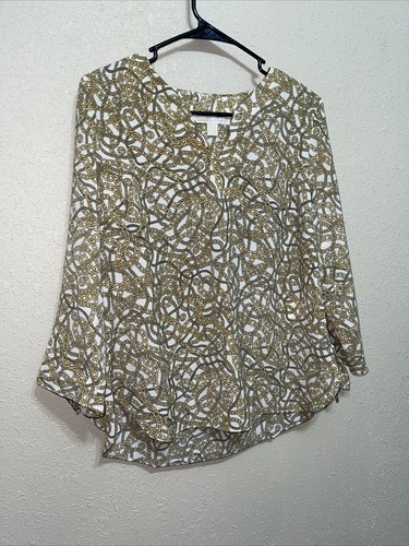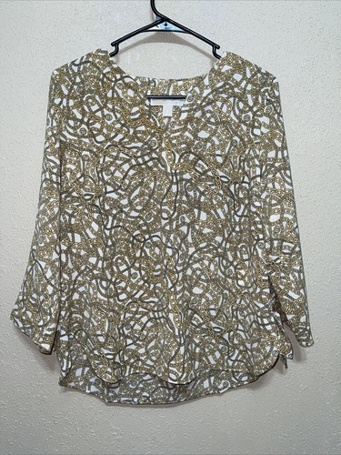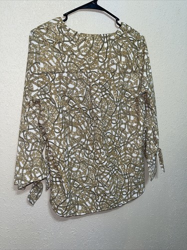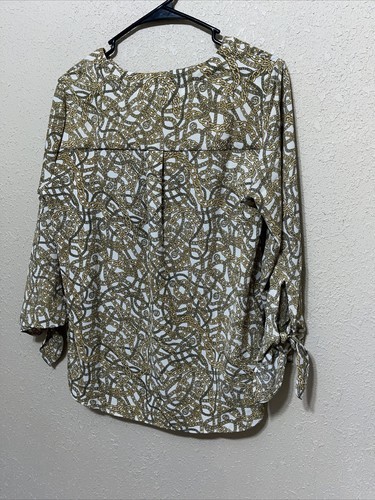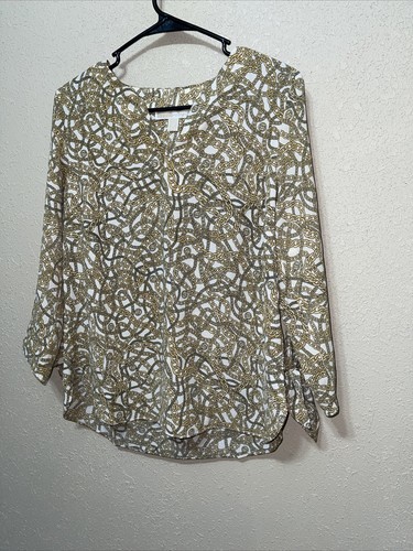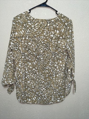 - MICHAEL KORS MK Womens Blouse Top Shirt Tie Bone Gold Chains SZ M NEW