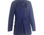 Michael Kors Purple Blue Asymmetrical Softshell Belted Hooded Trench Coat Medium
