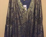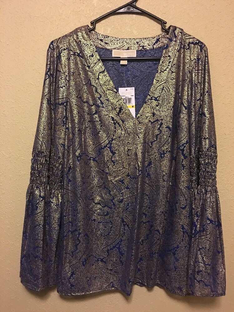 - MICHAEL KORS S Blue/Gold Metallic V-neck Paisley Bell Sleeve Blouse/Top SZ M NEW