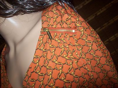 Orange Spice Michael Kors Chain Print Long Sleeve Zip Front Sweetheart Top