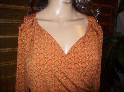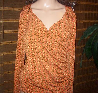 - Michael Kors Signature Print Long Sleeve Top Blouse Orange Spice SZ M NWT