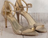 The Michael Kors Women's Simone Mid Sandals in Silver/Sand, Size 8, are a stylish and elegant choice for any party or cocktail event. Featuring a solid pattern with an open toe and stiletto heel, these strappy sandals are accented with glitter for added sparkle. The adjustable buckle closure ensures a perfect fit, while the 3-inch platform height provides a comfortable and chic option for high heels. Made with leather and showcasing a metal theme, these sandals are a must-have for any fashion-forward woman looking to make a statement.