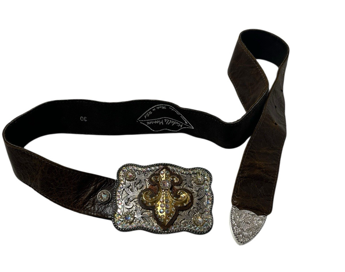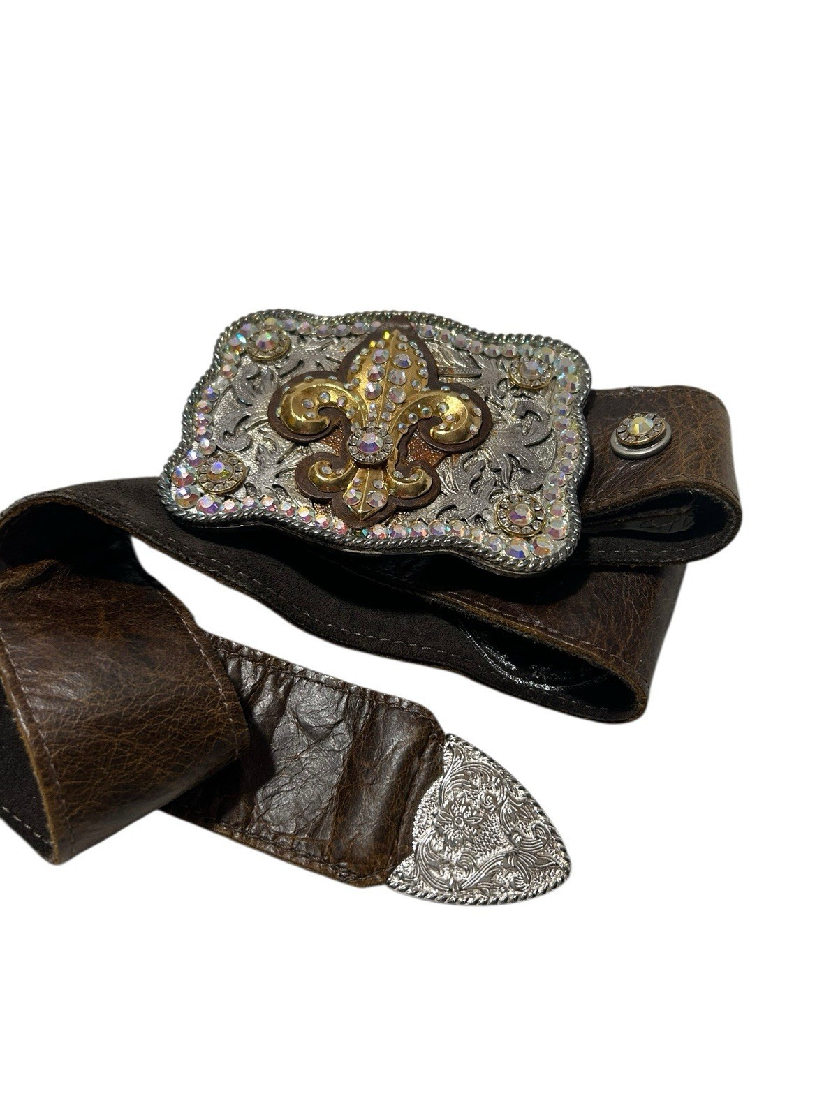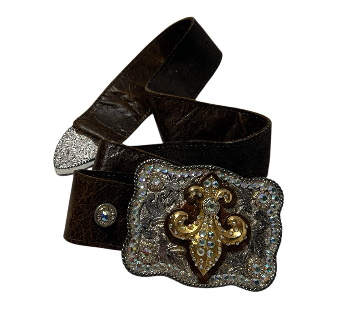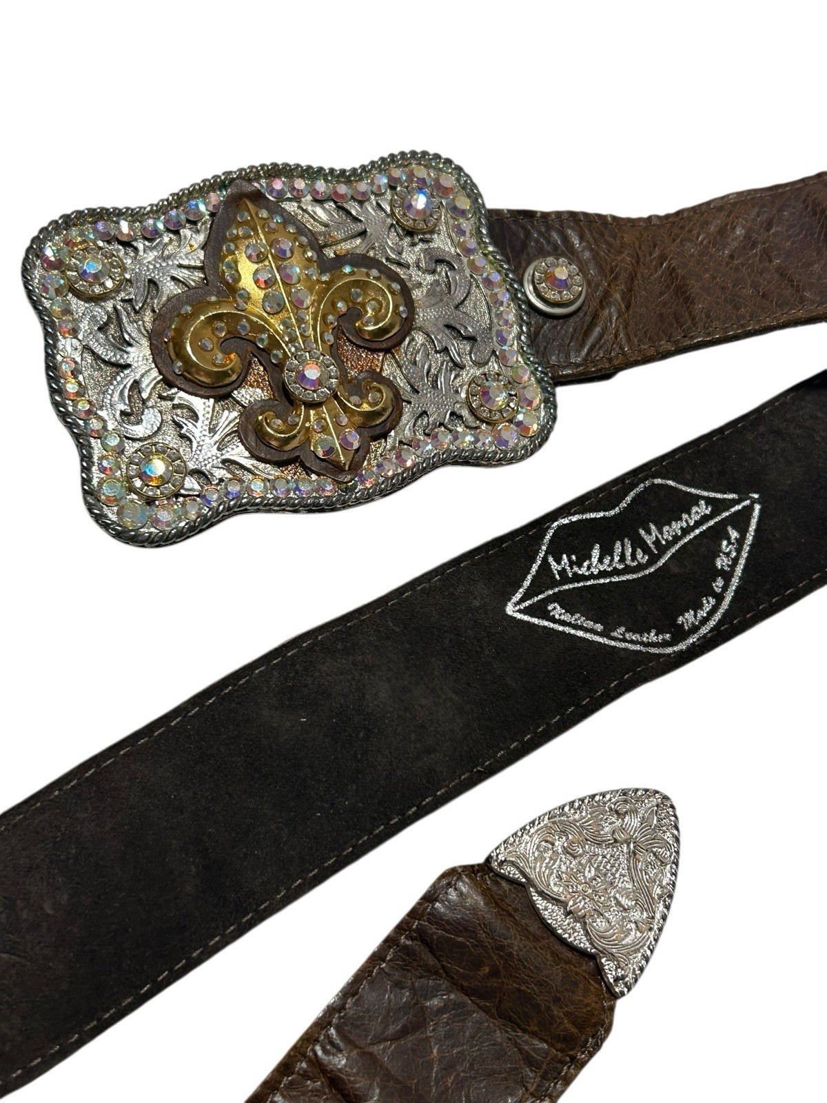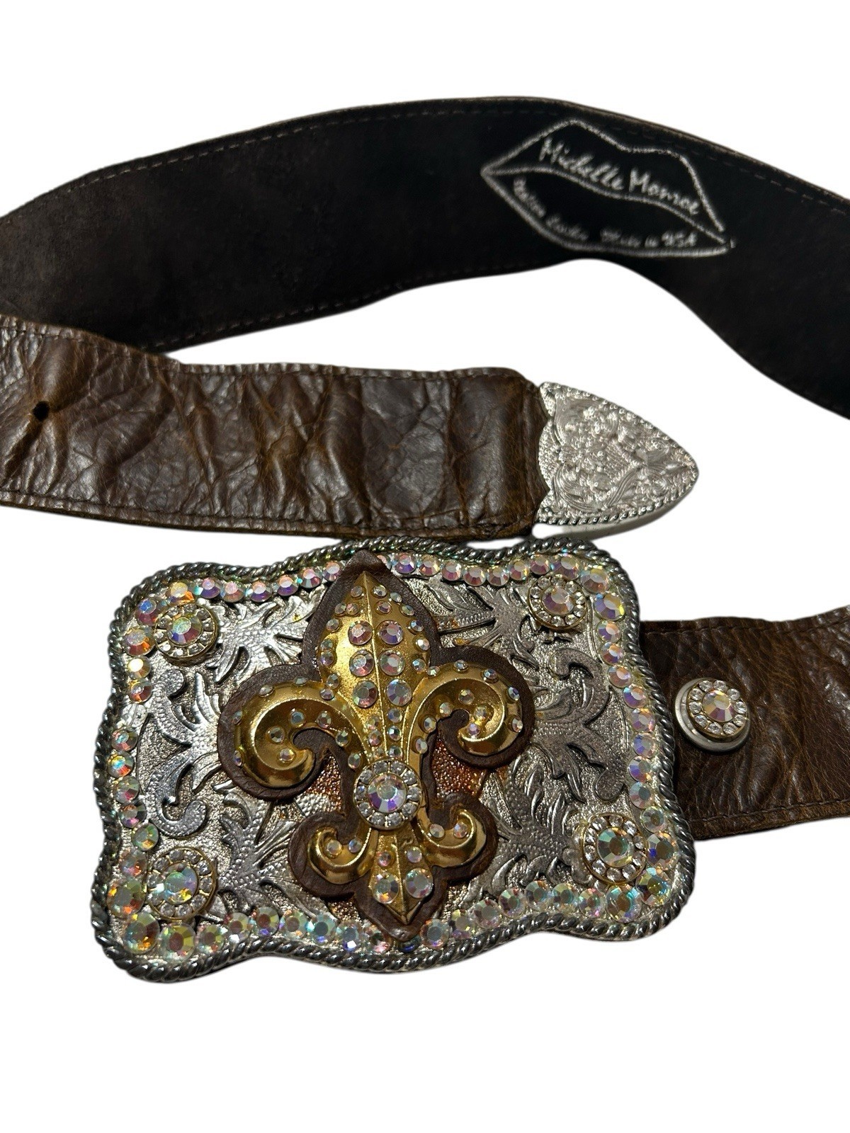 - Michelle Monroe Swarovski Crystal Studded Fleur-de-lis Women Western Belt Buckle
