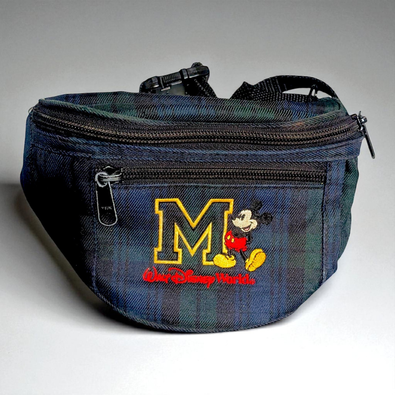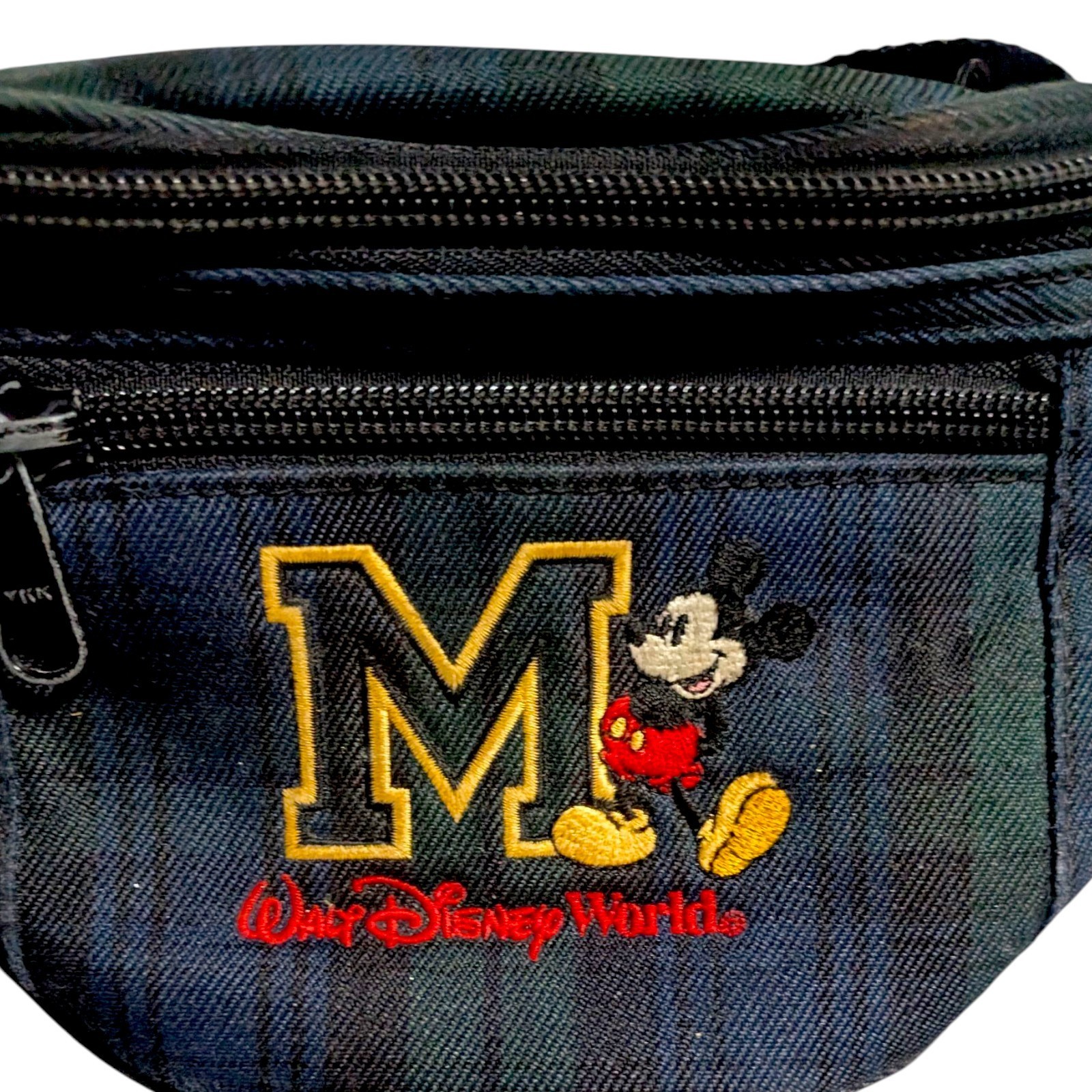 - Mickey Mouse Fanny Pack Plaid Crossbody Walt Disney World VTG Black green Check
